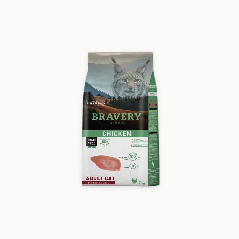 GatosBraveryChicken Esterilizado Adulto 7kgPresentación: 7 kg$53.500Alimento para gatos adultos. Proteína: 32%. Formato 7kg.Información NutricionalDetalle completo disponible próximamenteProteína: 32%Proteínas32%GrasasFibraHumedadCaloríasPróximamente¿Dónde comprarlo?Consulta disponibilidad por WhatsApp.Consultar por WhatsAppVolver al catálogo