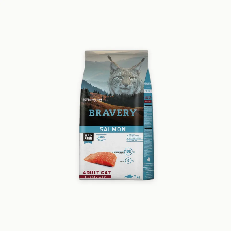 GatosBraverySalmon Esterilado Adulto 7kgPresentación: 7 kg$55.000Alimento para gatos adultos. Proteína: 32%. Formato 7kg.Información NutricionalDetalle completo disponible próximamenteProteína: 32%Proteínas32%GrasasFibraHumedadCaloríasPróximamente¿Dónde comprarlo?Consulta disponibilidad por WhatsApp.Consultar por WhatsAppVolver al catálogo