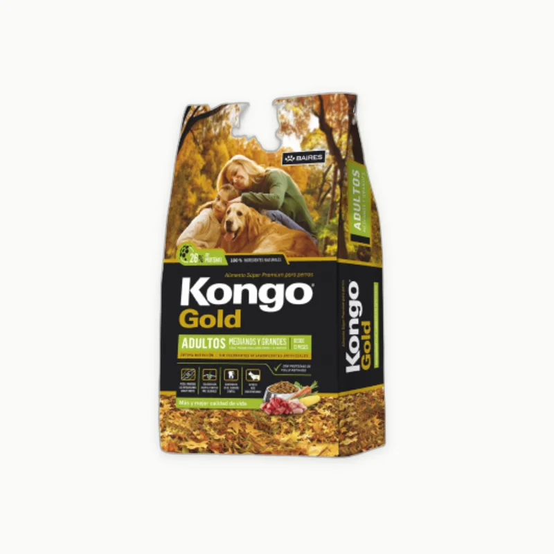 PerrosKongo GoldAdulto 21kgPresentación: 21 kg$44.000Alimento para perros adultos. Proteína: 26%. Formato 21kg.Información NutricionalDetalle completo disponible próximamenteProteína: 26%Proteínas26%GrasasFibraHumedadCaloríasPróximamente¿Dónde comprarlo?Consulta disponibilidad por WhatsApp.Consultar por WhatsAppVolver al catálogo